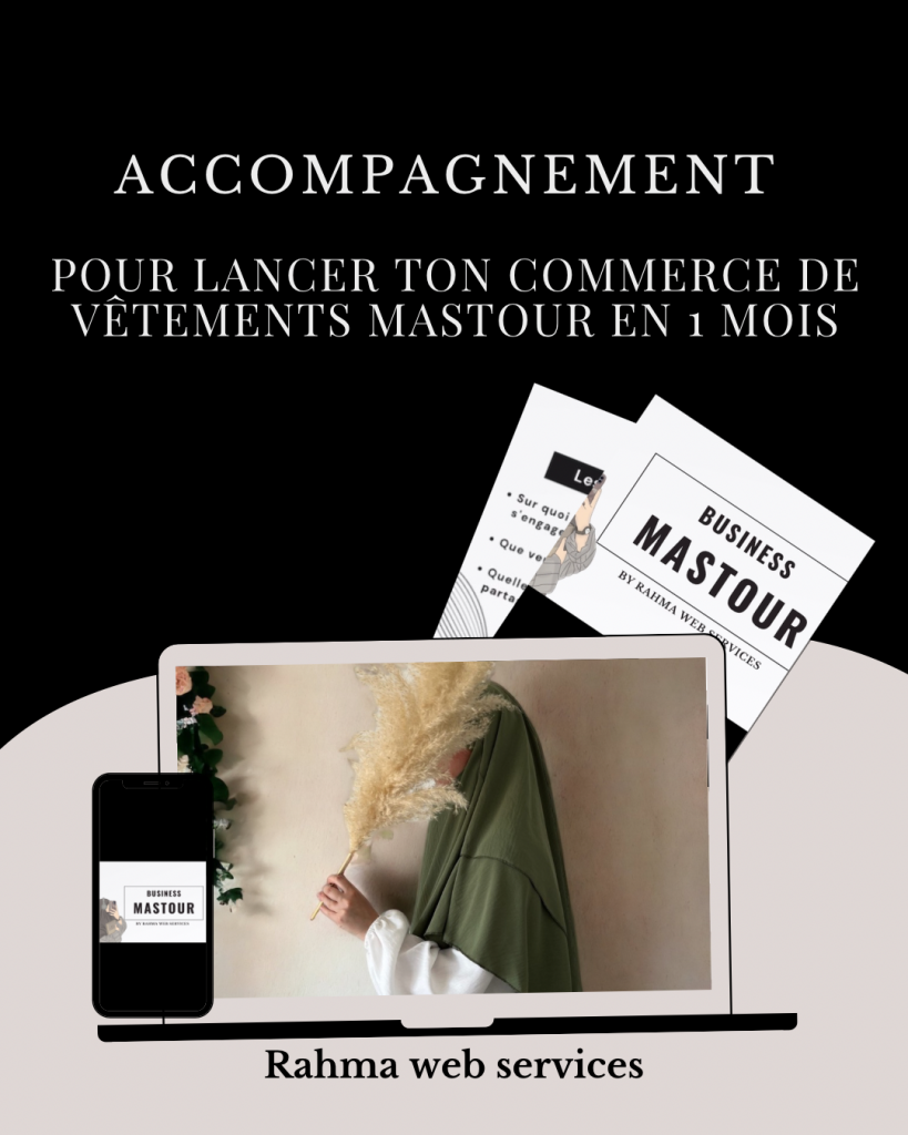 Business Mastour : l’accompagnement complet pour créer ta marque de vêtements mastour, lancer ton site et faire tes premières ventes (halal, sans te montrer).